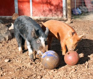 Aly became close friends with another pig, Bert, who has a similar story of survival. He broke into a neighbor’s yard in urban Sacramento. Animal control confiscated him from the original owner, who had planned to kill the young piglet.