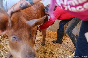 Alysoun (Aly) survived and arrived atour sanctuary as a delightful 4-month-old piglet. We knew her value was not in price per pound.