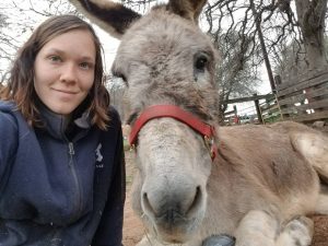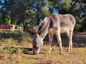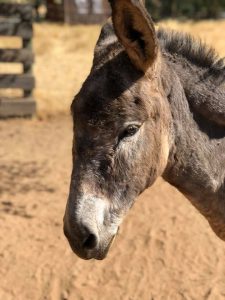 Jujube was being given away for free on Craigslist. At the time, we were searching for a new donkey resident to keep rescued donkey, Jellybean, company. We were able to take her in, and now the two donkeys are living in harmony.
