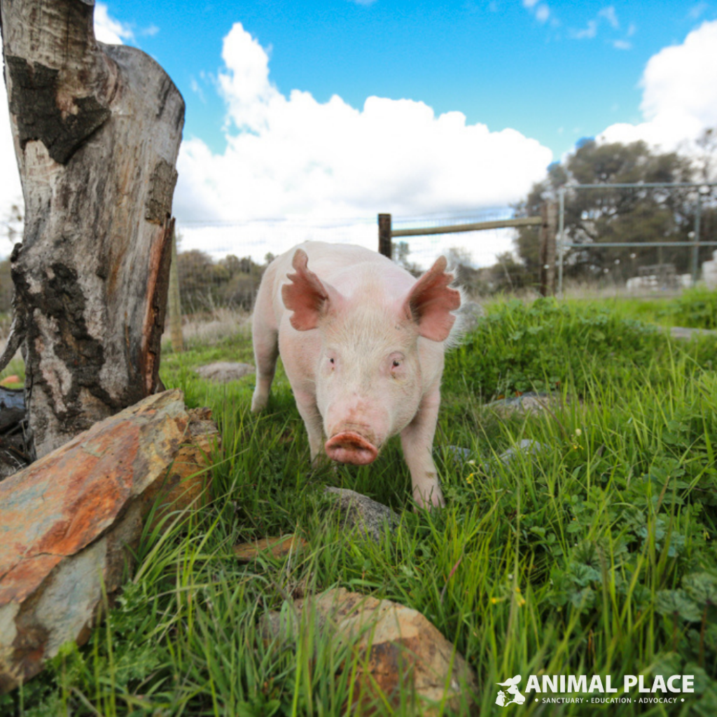 Meet the rescued residents who thrive because of you! Pigs: Alysoun Meet one of the 28 pigs who call Animal Place home! Alysoun was being raised for slaughter at a free-range farm. Born a runt, she was abandoned to die. An employee took her home, and she made her way to Animal Place. Alysoun is