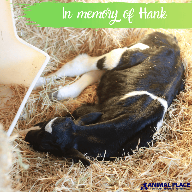 We did all we could to help Hank live. He could not overcome the harm done by the dairy industry. He died with one of our caregivers by his side and is buried at the sanctuary.