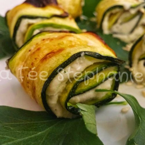 - Take a slice of zucchini and spread it with herb cheese. You can then roll up your zucchini, without exerting too much pressure so that the cheese does not spill over the sides.