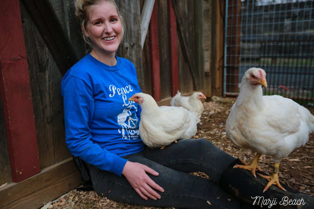 “I have the privilege of witnessing small moments that usually go unseen. I get to listen to the pigs snoring and dreaming at night. I get to see the rabbits snuggling and grooming one another or the roosters save special treats to give to their favorite hens. I get to see babies grow up big and strong, and scared animals become confident and loving.” – Michelle, Animal Care Manager