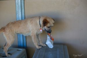 Mona LOVES other dogs and would do best in a home with at least one other active pooch. She would do best in a home with dogs her size or slightly larger, as she does have the tendency to confuse small dogs’ tails for toys. (Rude).