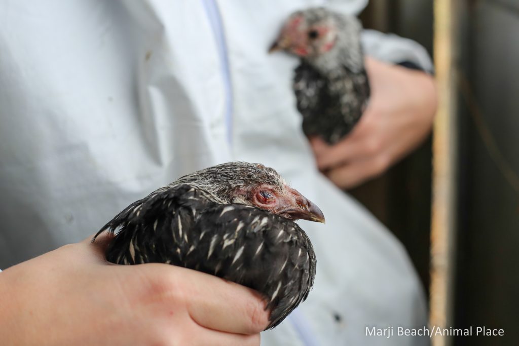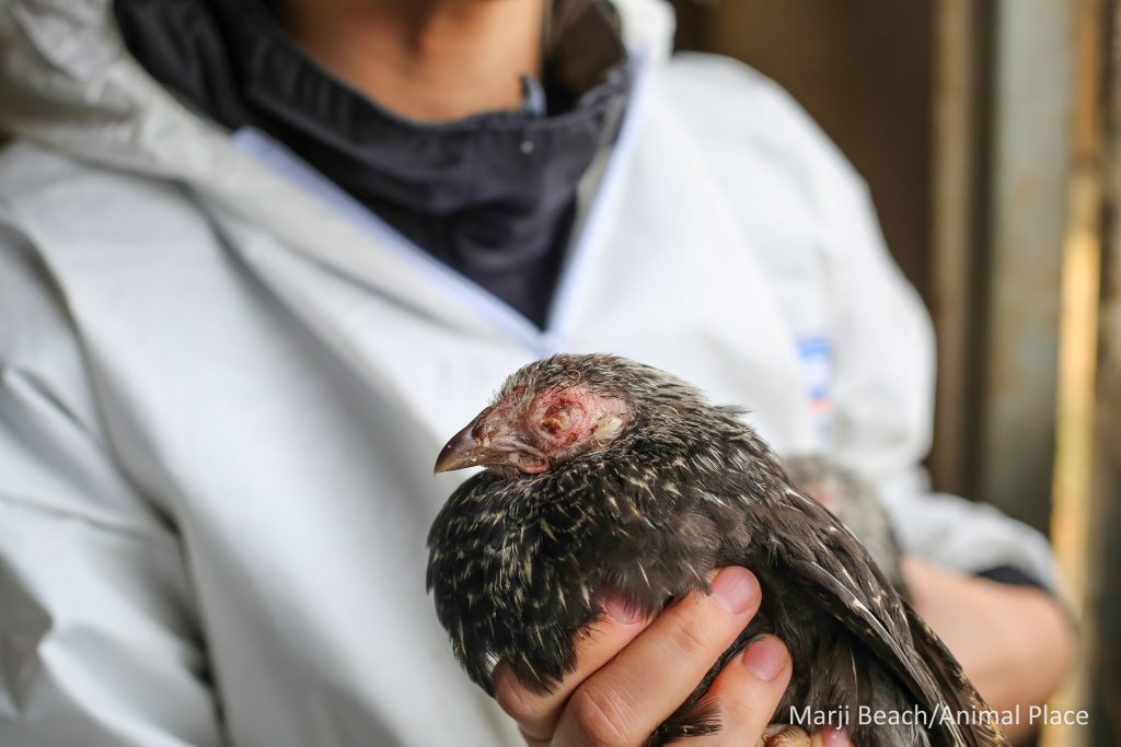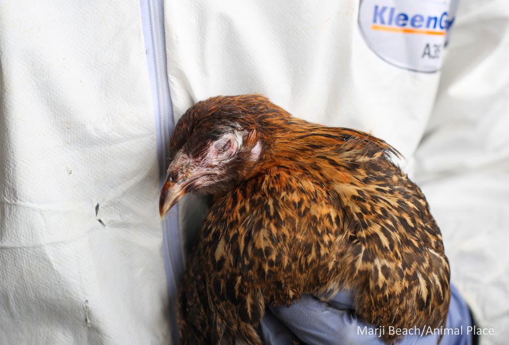 All of the birds were brought to Animal Place sanctuary where they will be housed until test results are returned to determine if the birds can be adopted. Unfortunately, these birds may be too ill to be saved and it is possible euthanasia will be the only option.