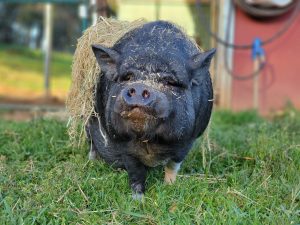 Ivan is another big pig with an even bigger personality. This lovebug was rescued as a rambunctious piglet from a petting zoo. They had planned to send him to slaughter when he grew too large to be pet by children. Ivan insists on rearranging the straw beds that his herd builds every day. This causes quite the controversy in the pig barn. But Ivan won’t be stopped!