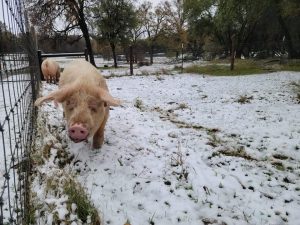 Thousands of people were left without power in their homes. This included some Animal Place staff! Whiteout conditions made driving incredibly dangerous.