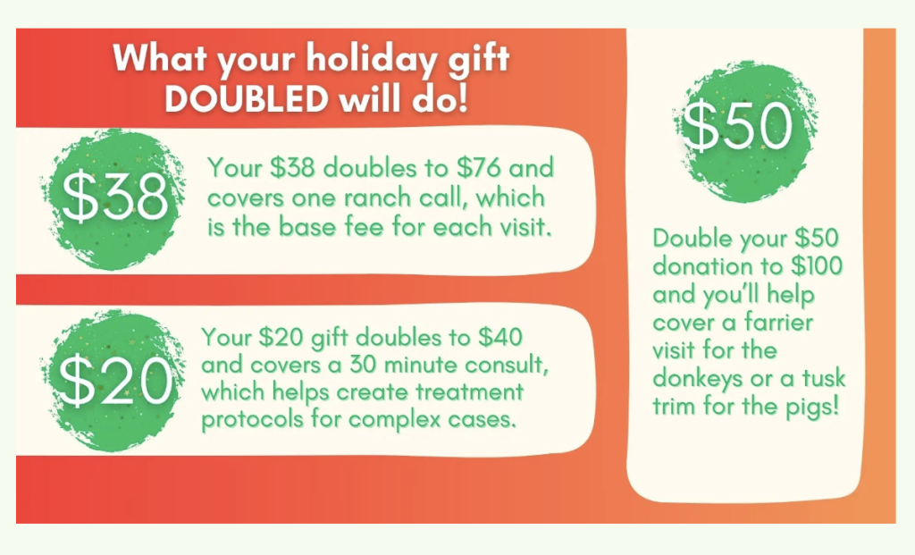 Donate today so that we can continue our 2025 weekly veterinary visits!